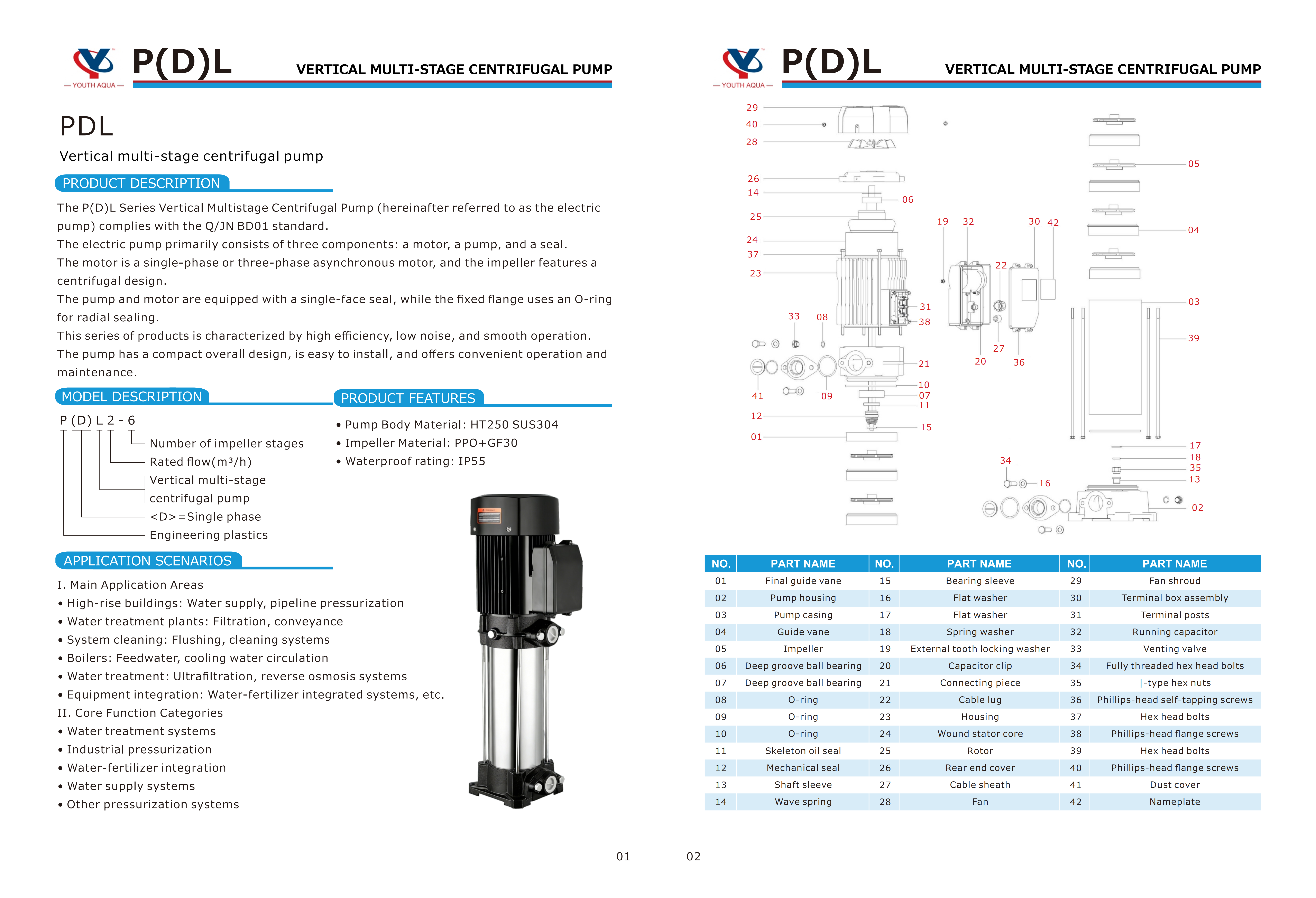 تتوافق مضخة الطرد المركزي العمودية متعددة المراحل من سلسلة P(D)L (يشار إليها فيما بعد باسم المضخة الكهربائية) مع معيار Q/JN BDO1.